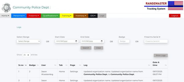 Review all entries and edits. Search by date, specific personnel, or specific firearm.